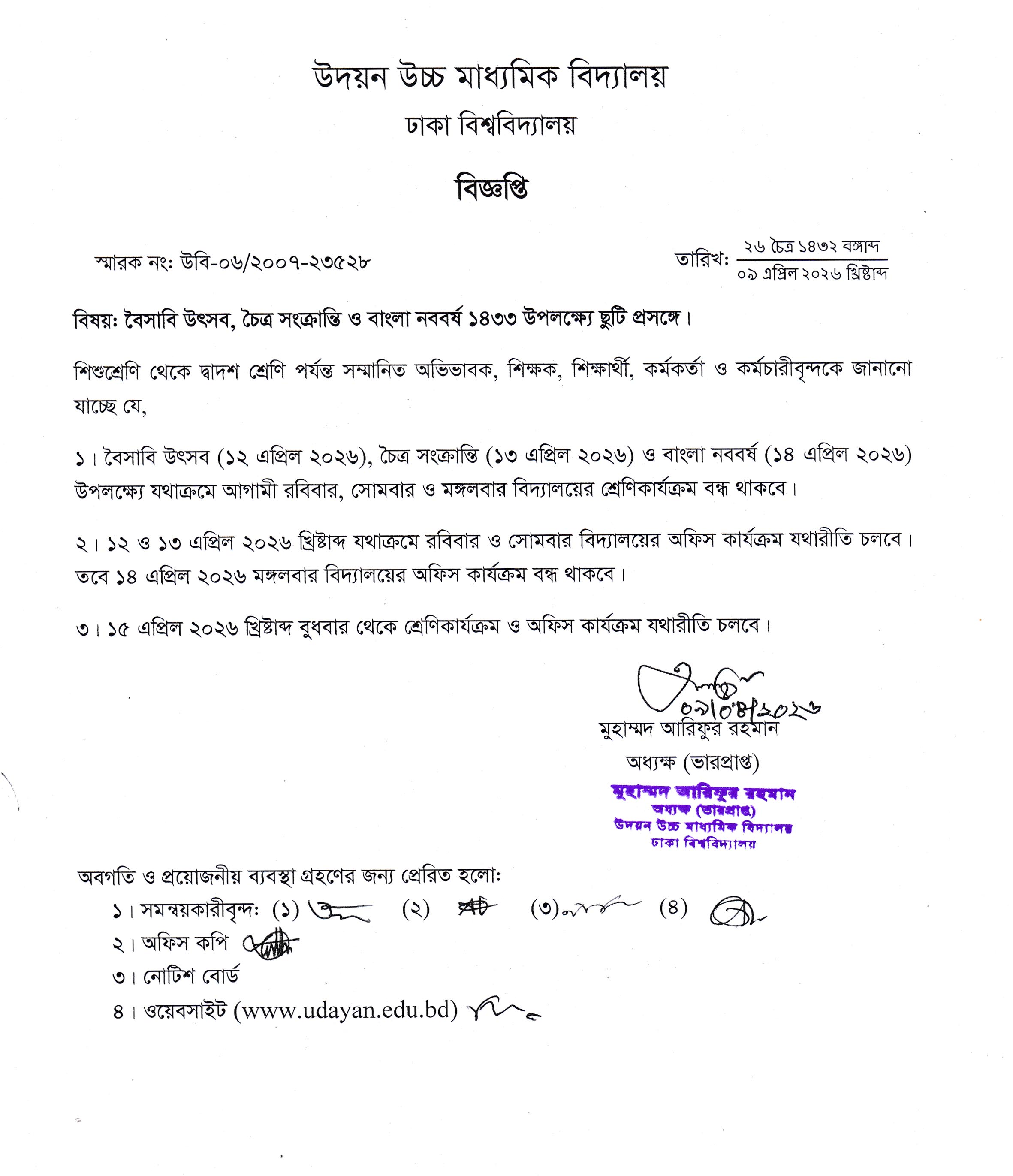 | 2026-04-02 | ইস্টার সানডে উপলক্ষ্যে ছুটি প্রসঙ্গে। | ***Easter Sunday Leave (5 April 2026)*** | Please Click here to Download it. |