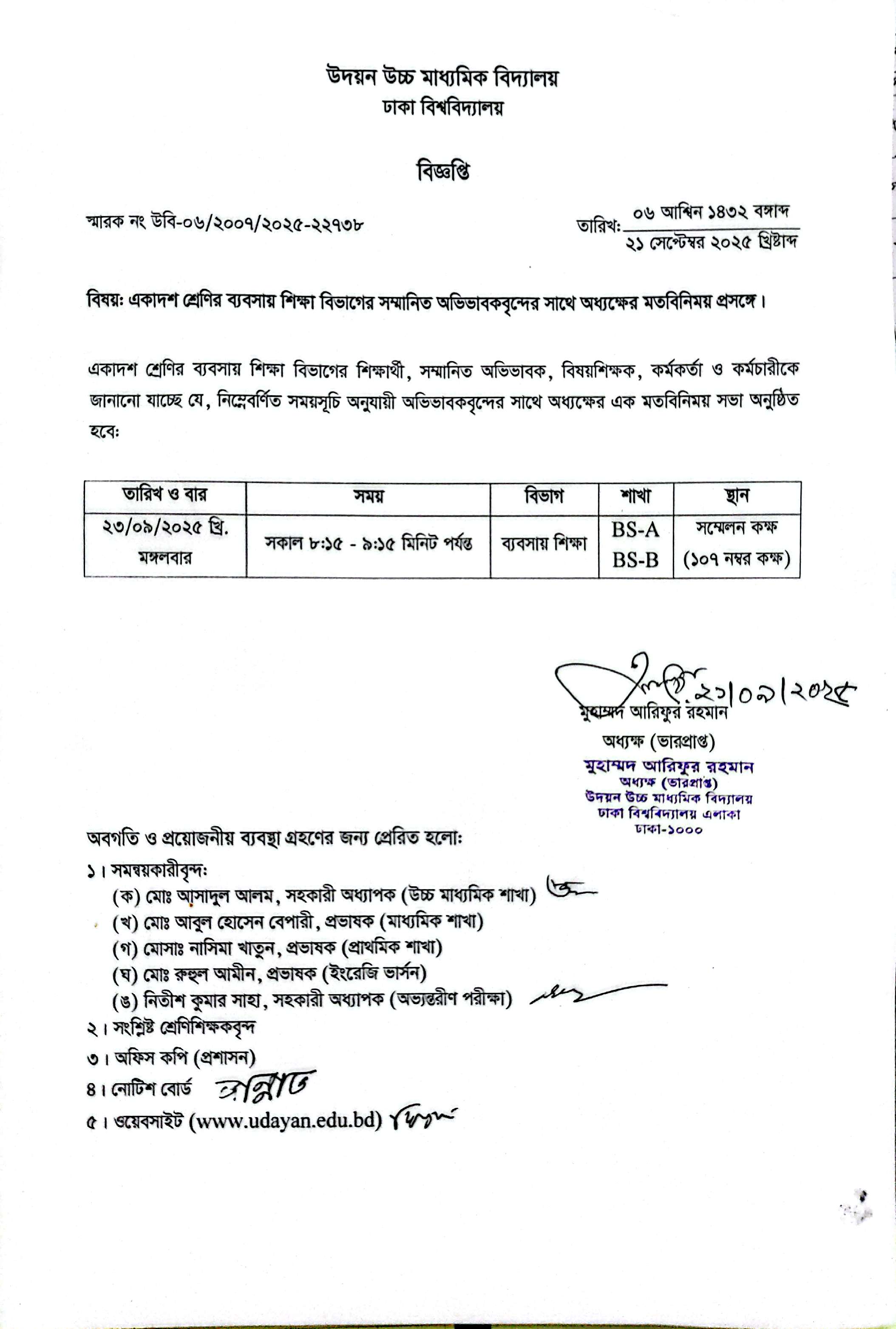 2025-09-21 | একাদশ শ্রেণির ব্যবসায় শিক্ষা শাখার অভিভাবকদের সাথে অধ্যক্ষের মতবিনিময় প্রসঙ্গে। | ***Parents Meeting (XI BS)*** | Please Click here to Download it. |