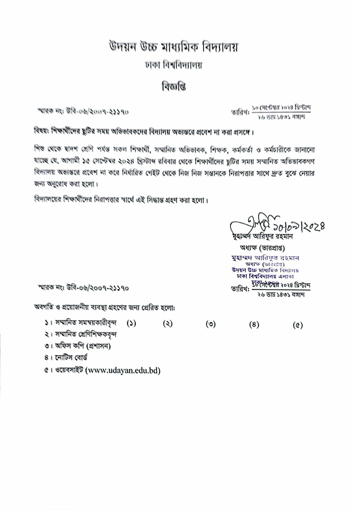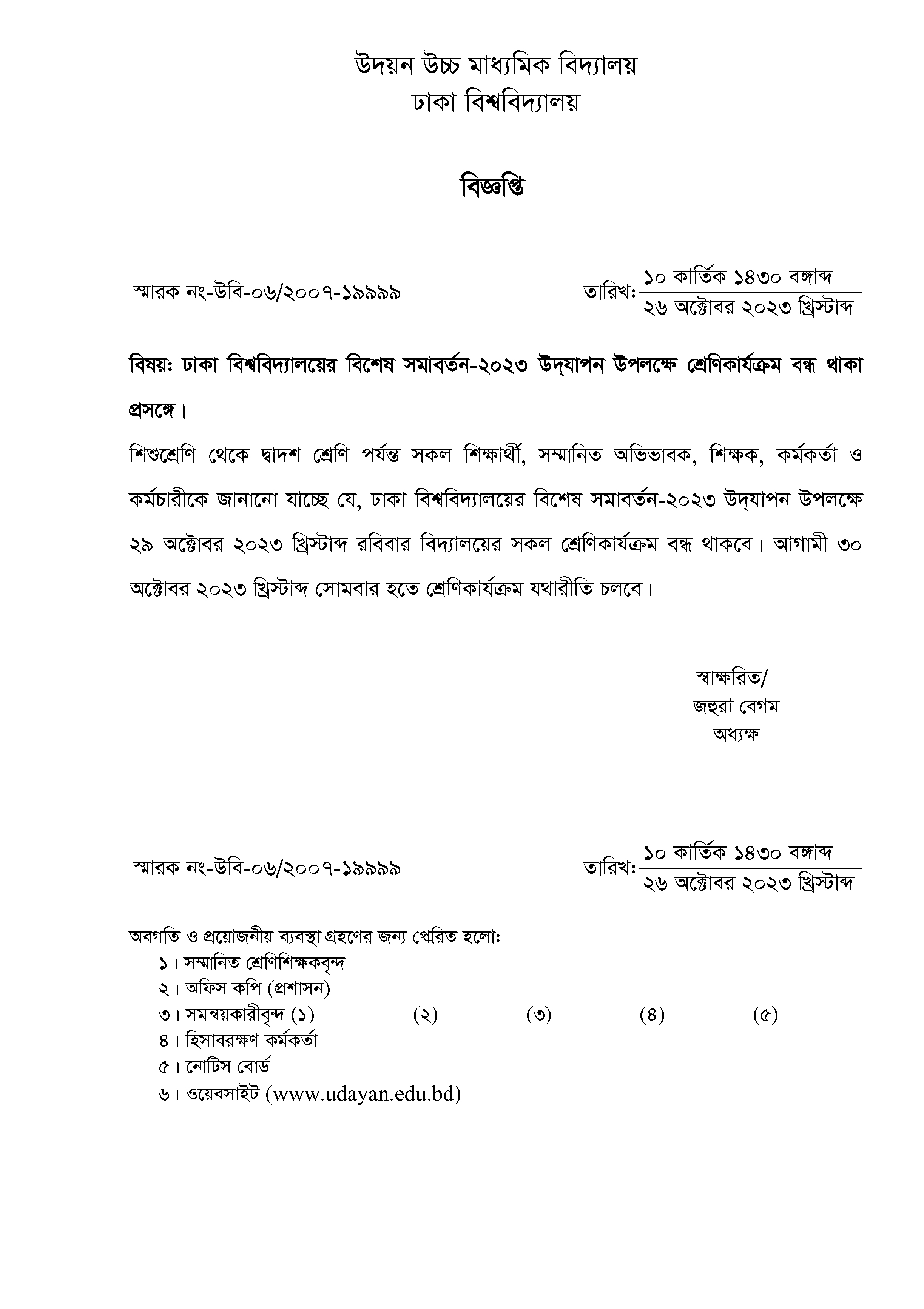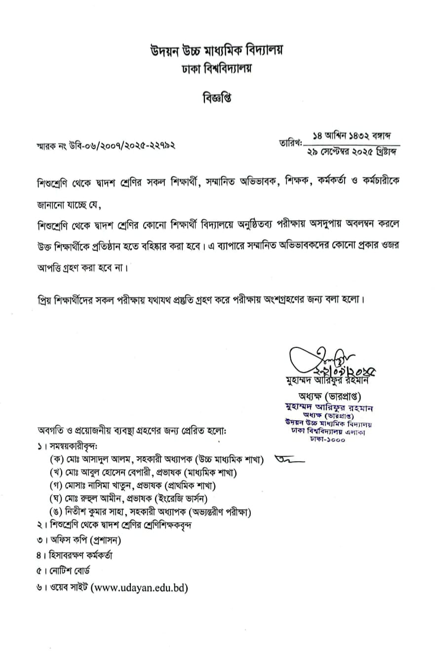 | 2025-10-07 | পরীক্ষায় নকল করার শাস্তি প্রসঙ্গে। | ***Exam Corruption*** | Please Click here to Download it. |