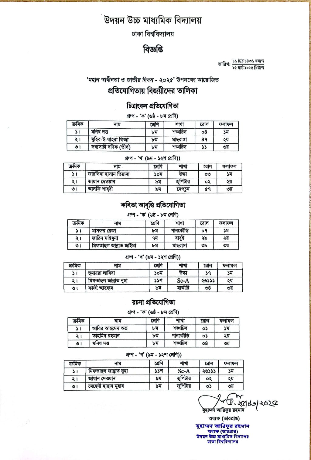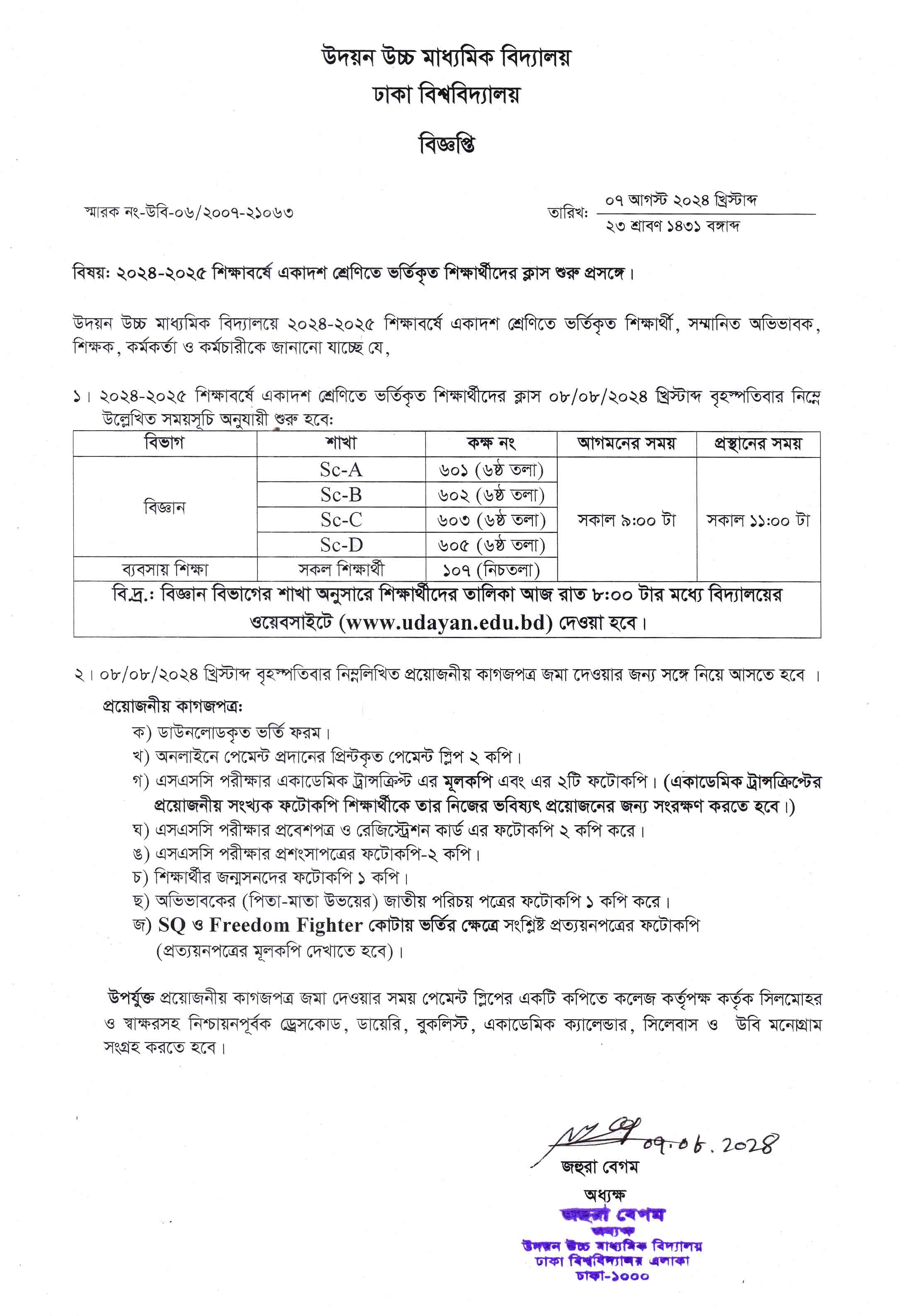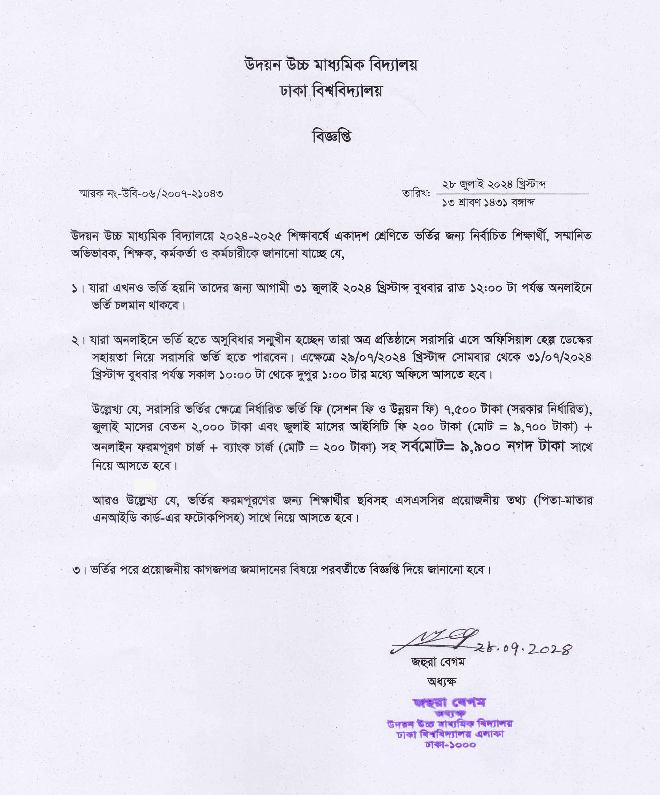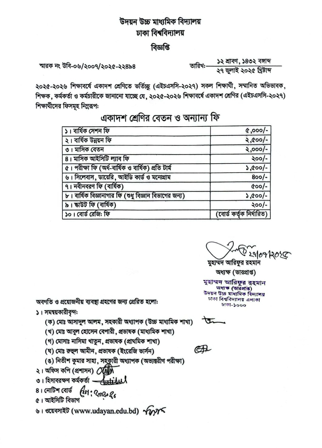| 2025-07-28 | একাদশ শ্রেণির বেতন ও অন্যান্য ফি | ***Tuition and Other Fees (XI)*** | Please Click here to Download it. |