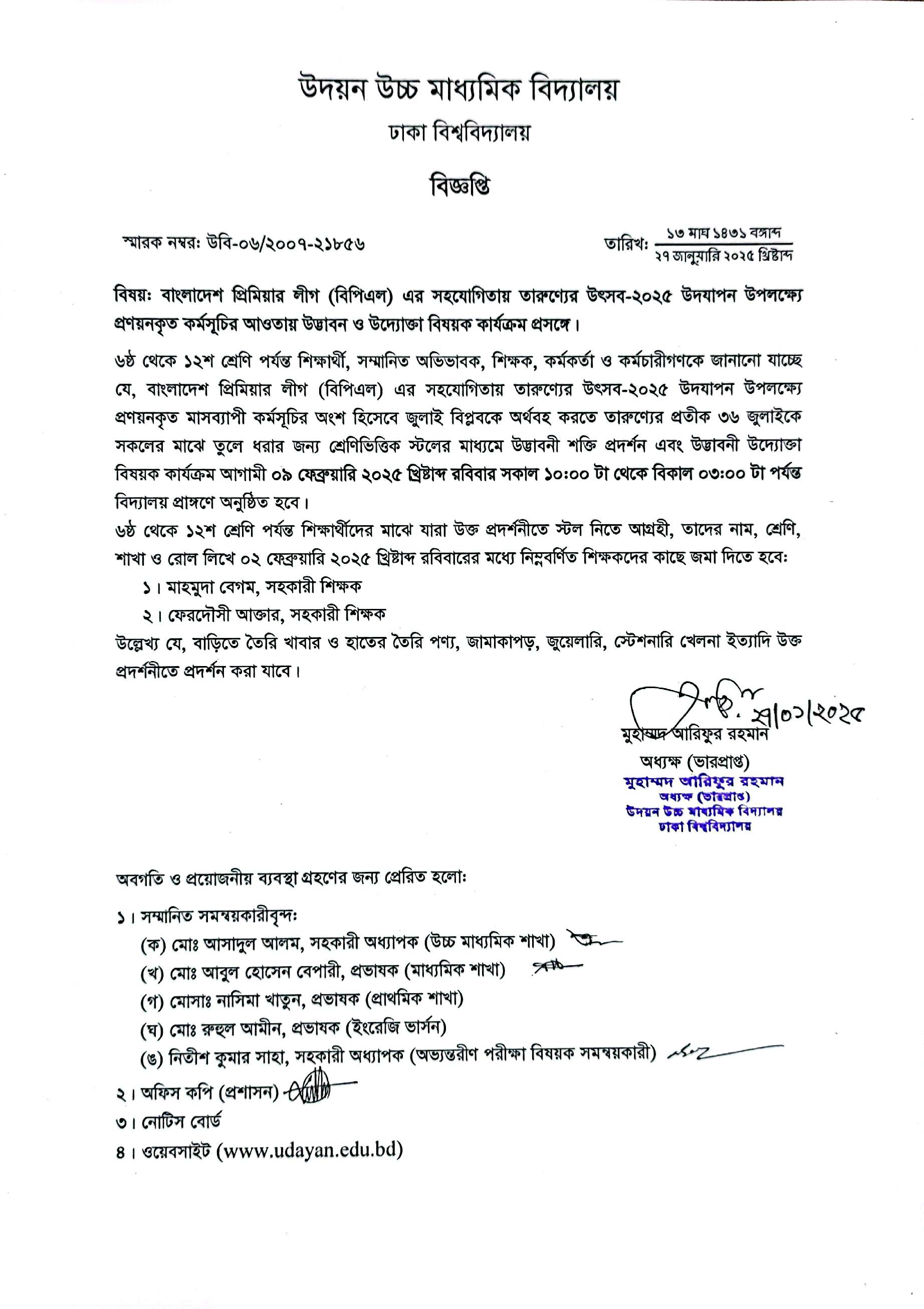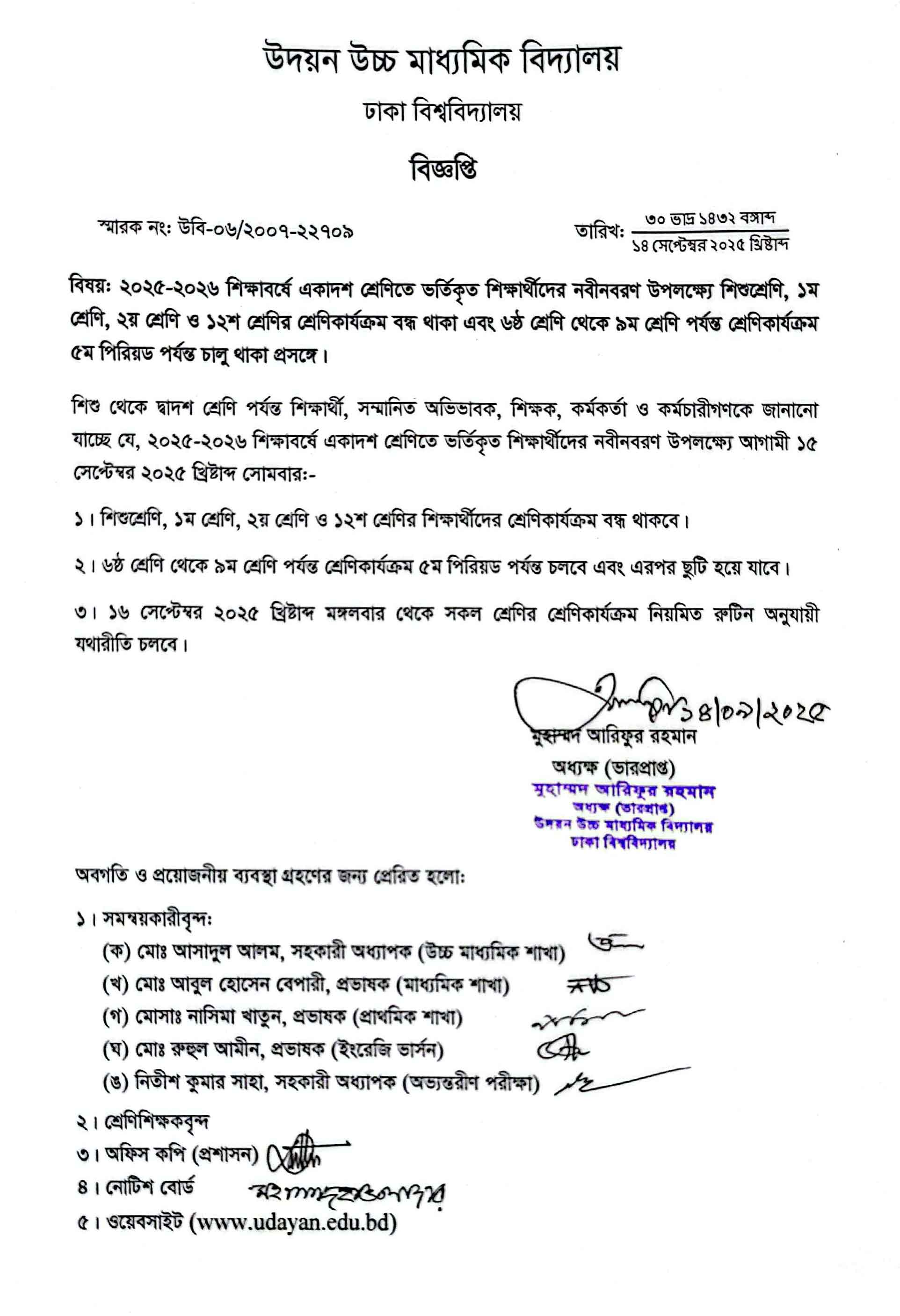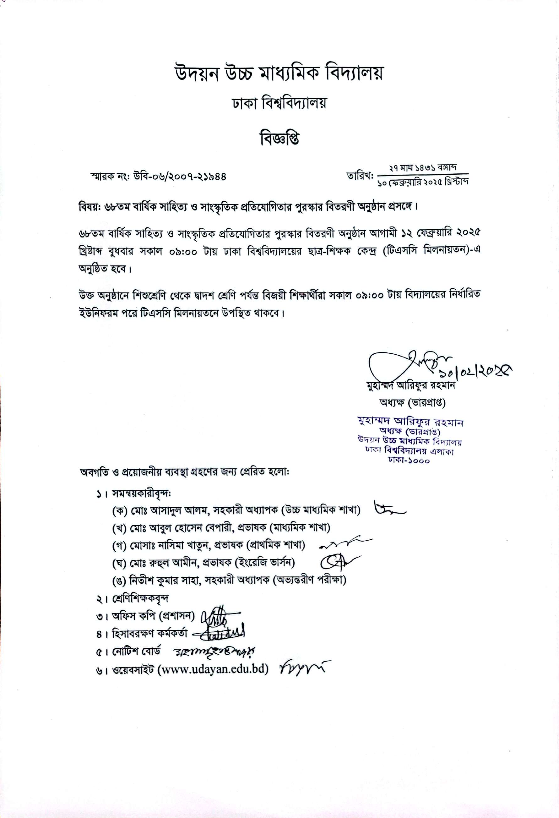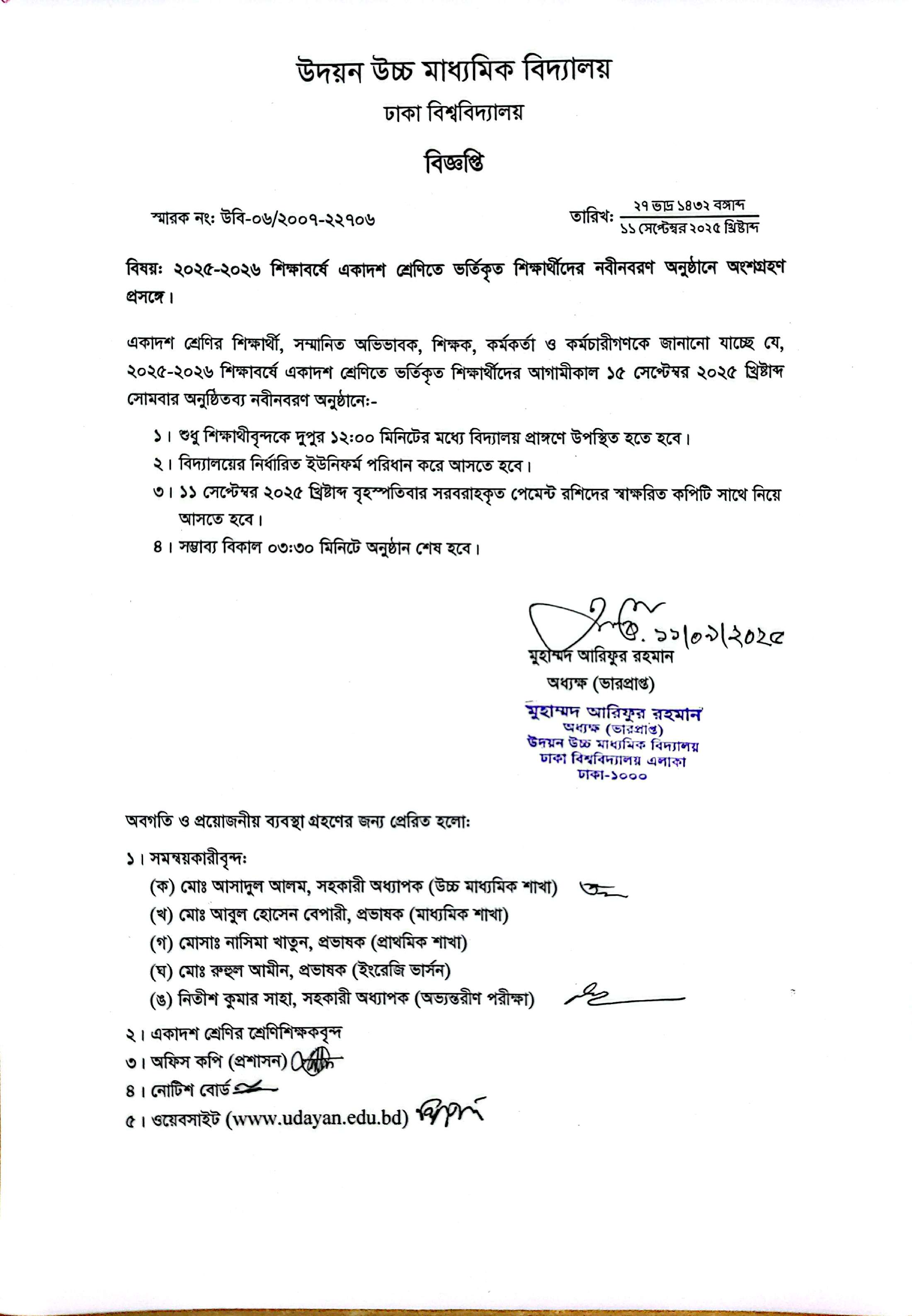 | 2025-09-14 | একাদশ শ্রেণিতে ভর্তিকৃত শিক্ষার্থীদের নবীনবরণে অংশগ্রহণ প্রসঙ্গে | ***New Receiption Presense*** | Please Click here to Download it. |