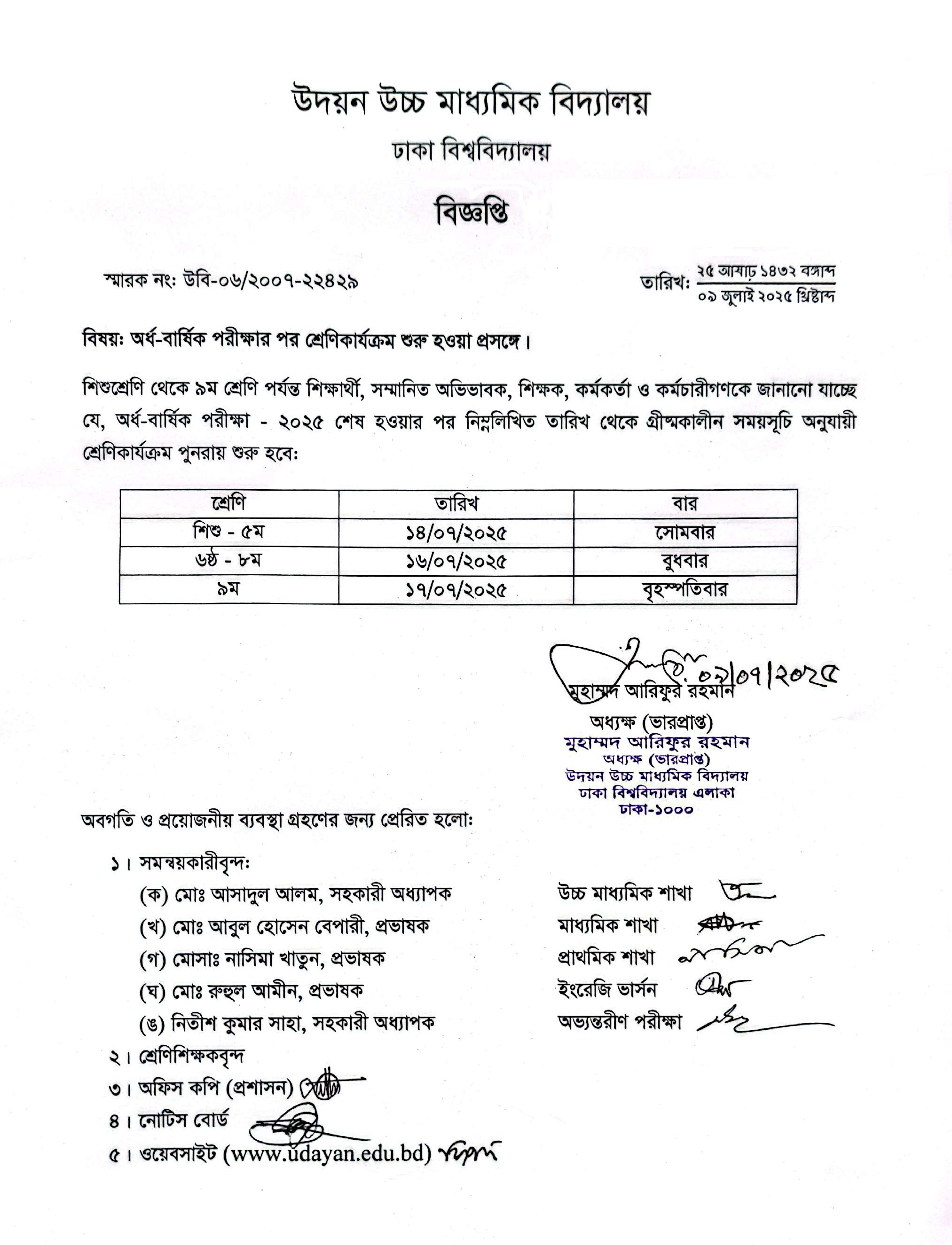 | 2025-07-09 | অর্ধবার্ষিক পরীক্ষার পর শ্রেণিকার্যক্রম শুরু হওয়া প্রসঙ্গে | ***Class Resume after Exam*** | Please Click here to Download it. |