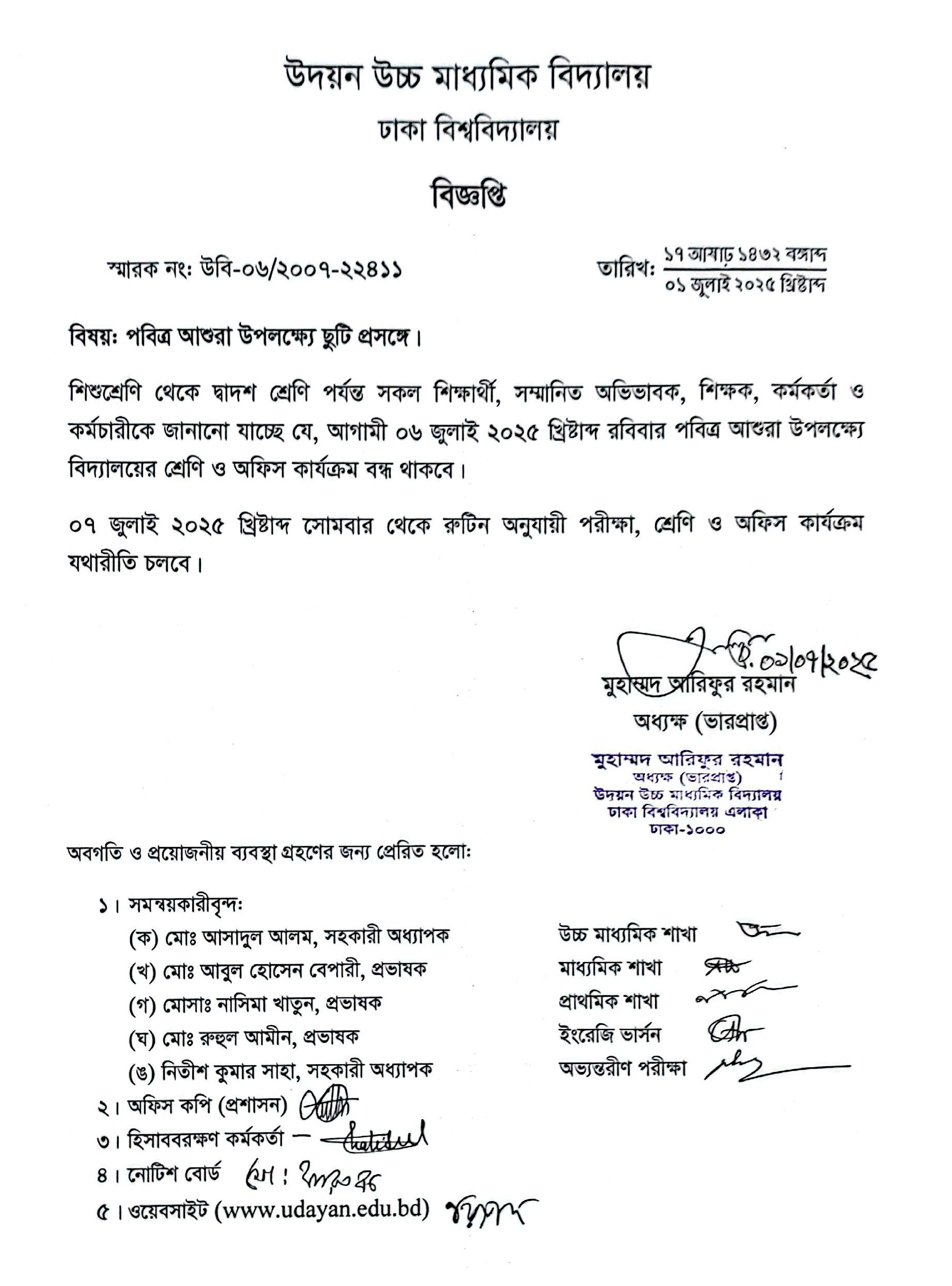 | 2025-07-03 | পবিত্র আশুরা উপলক্ষ্যে ছুটি প্রসঙ্গে। | ***Leave for Ashura*** | Please Click here to Download it. |