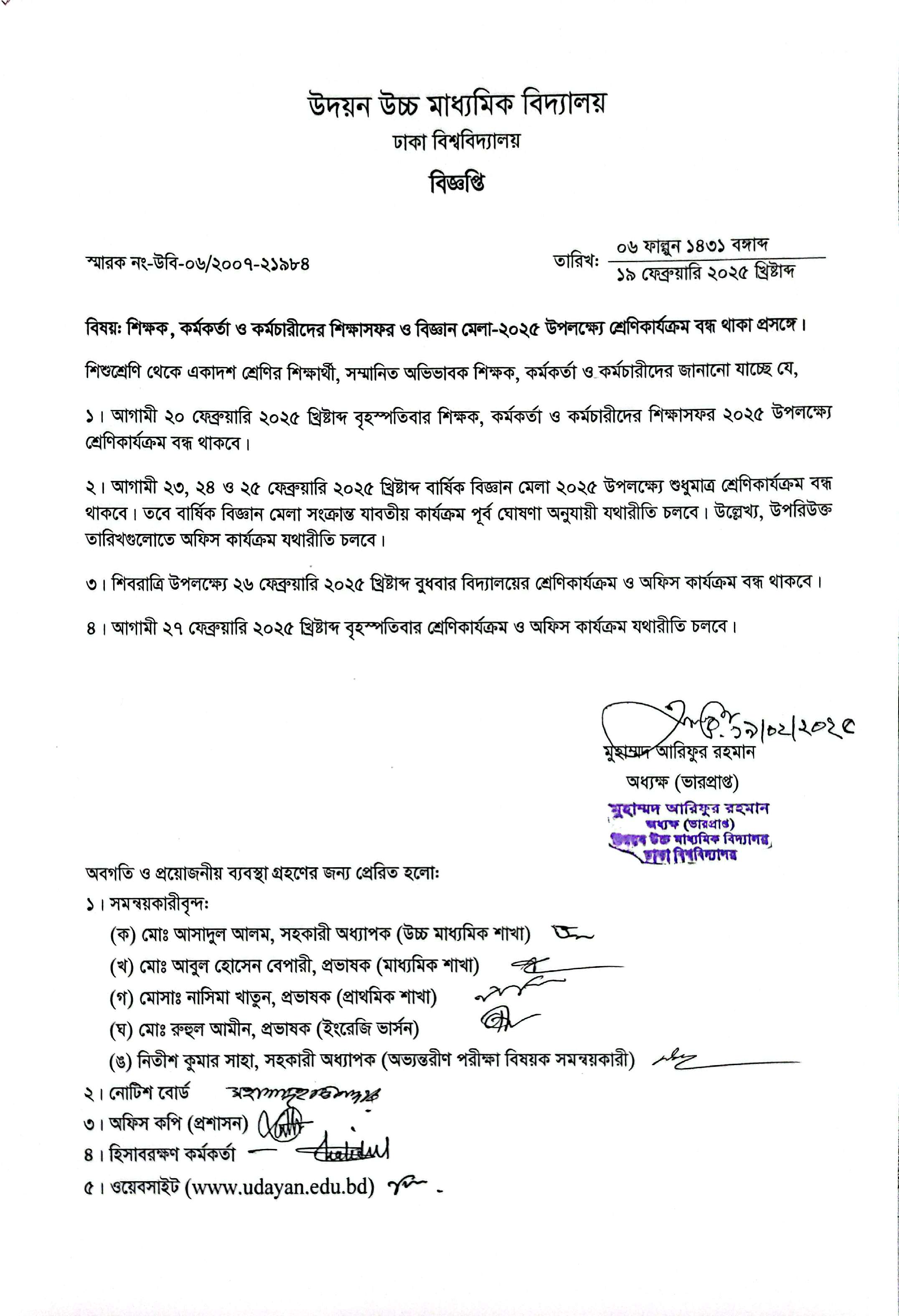 | 2025-05-15 | ১৭ মে কার্যদিবস সত্ত্বেও ঢাবি পরীক্ষার কারণে ক্লাস বন্ধ | ***Saturday Notice*** | Please Click here to Download it. |