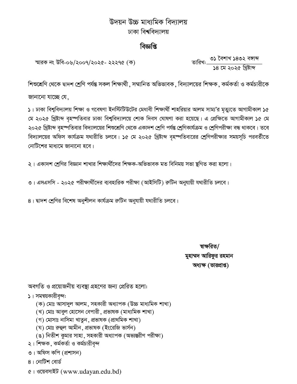 | 2025-05-14 | ঢাকা বিশ্ববিদ্যালয় শোক দিবস প্রেক্ষিতে শ্রেণি কার্যক্রম বন্ধ | ***Udayan Class Suspend Notice, for Mourning DU*** | Please Click here to Download it. |