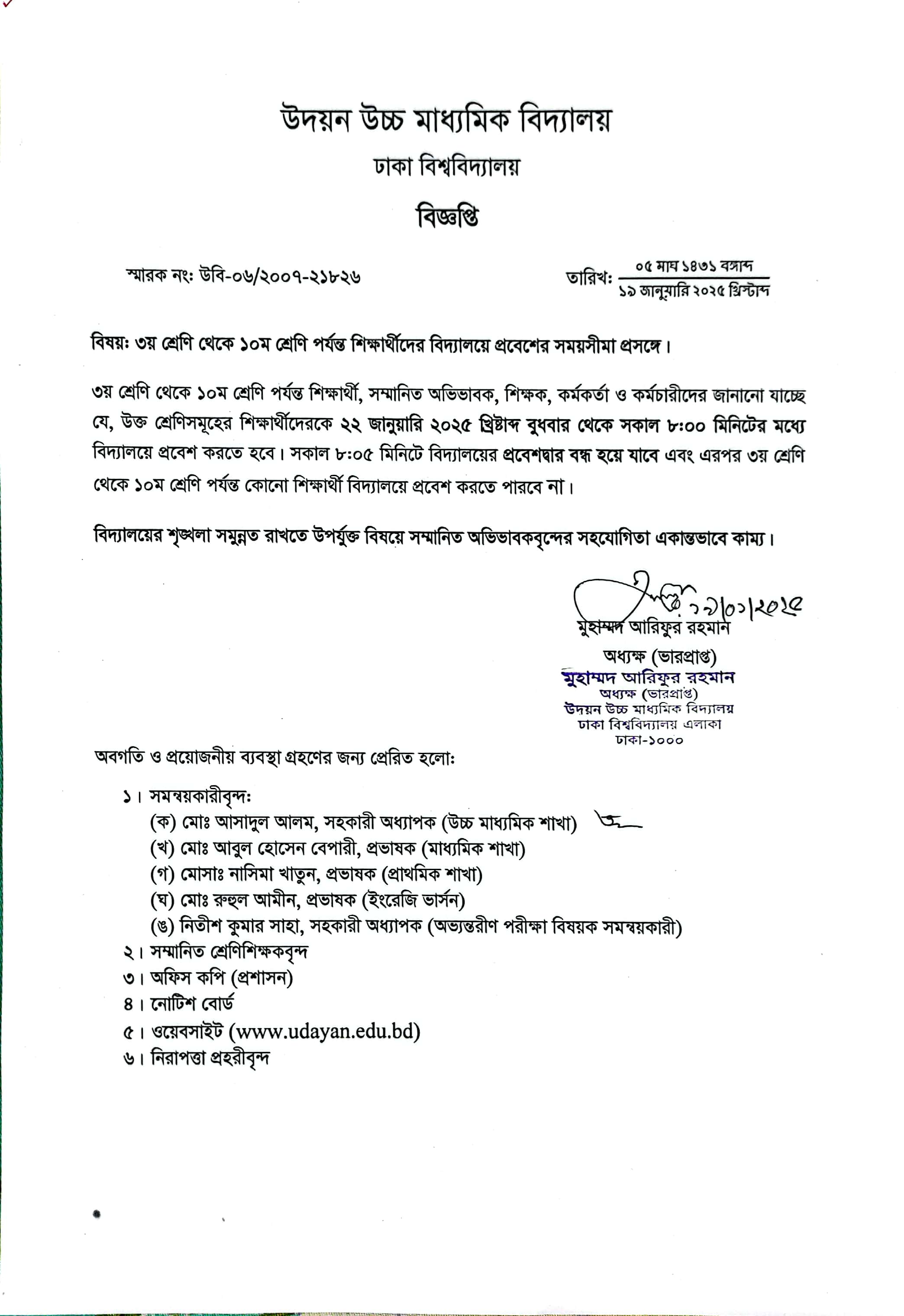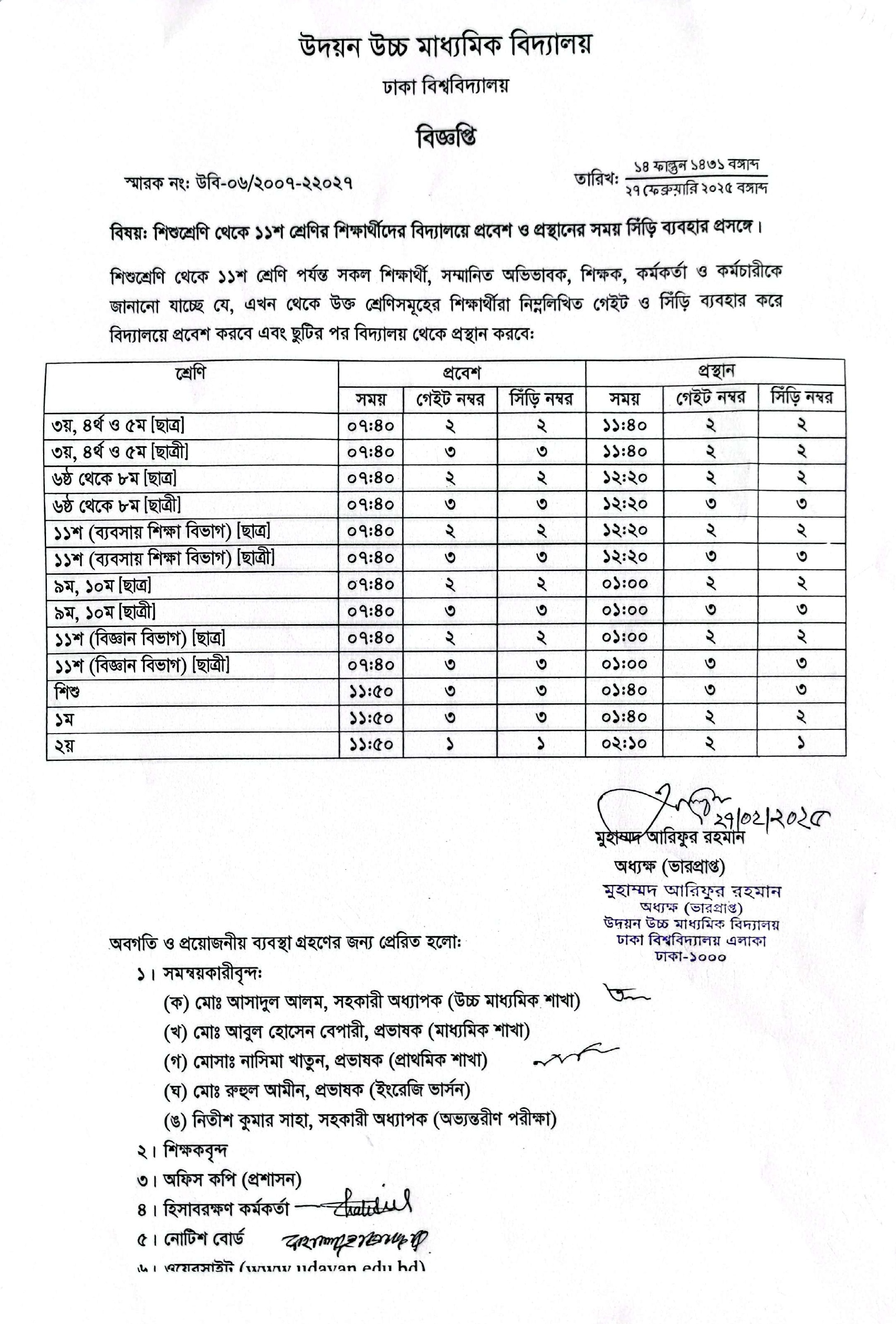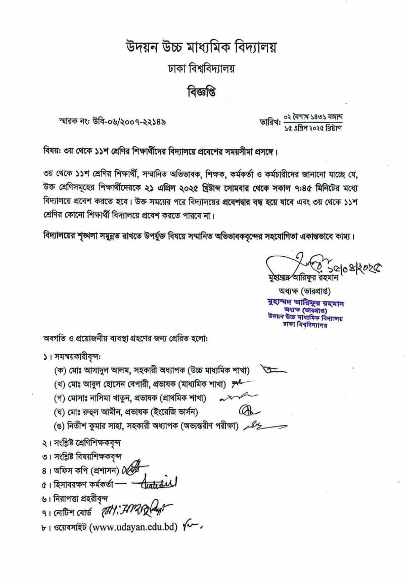 | 2025-04-17 | ৩য় থেকে ১১শ শ্রেণির শিক্ষার্থীদের বিদ্যালয়ে প্রবেশের সময়সীমা | ***Entry Time*** | Please Click here to Download it. |