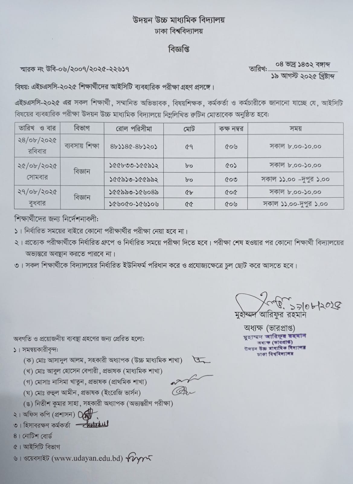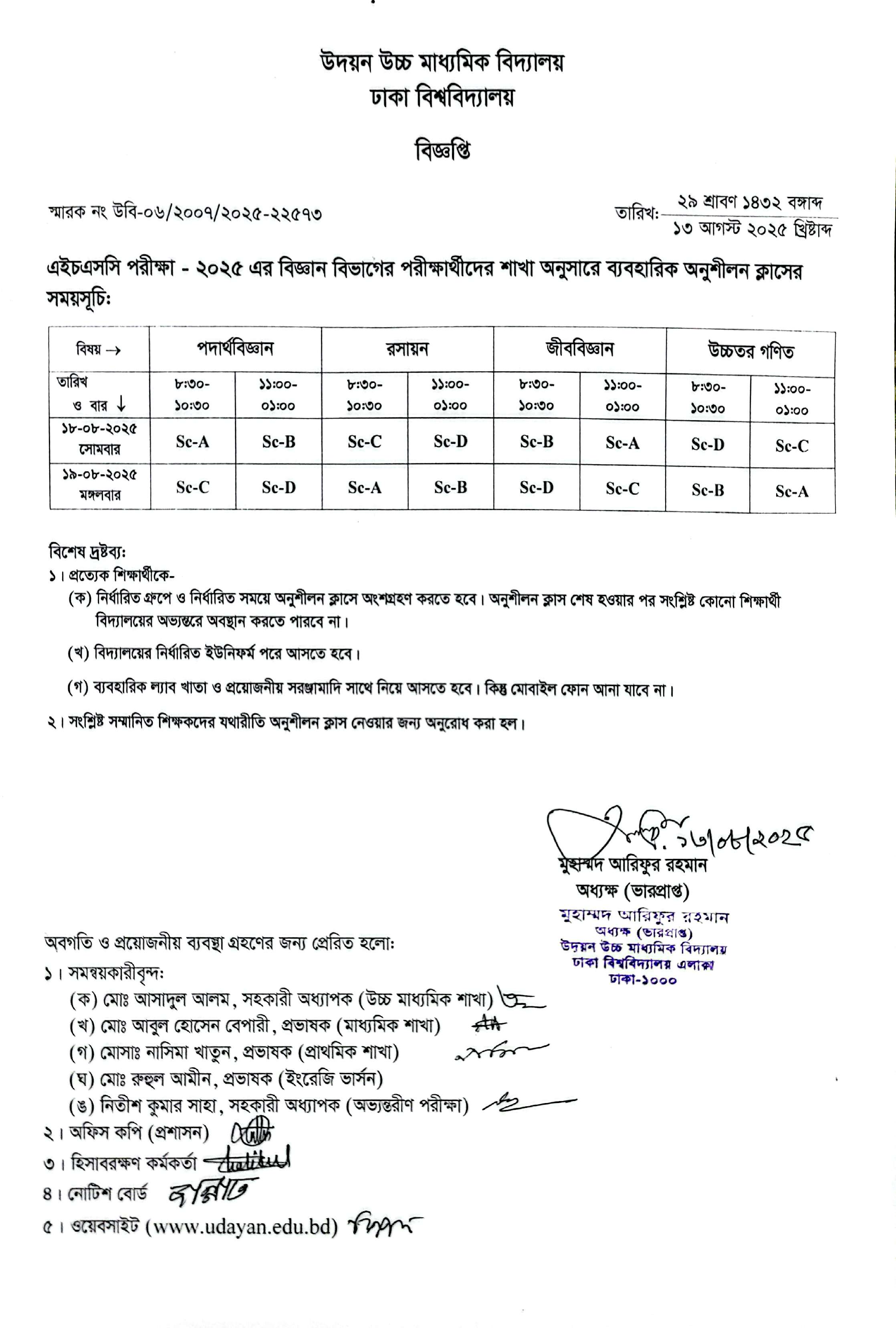 | 2025-08-14 | এইচএসসি পরীক্ষার্থীদের ব্যবহারিক অনুশীলন ক্লাসের রুটিন | ***HSC - 2025 Practical Practice*** | Please Click here to Download it. |