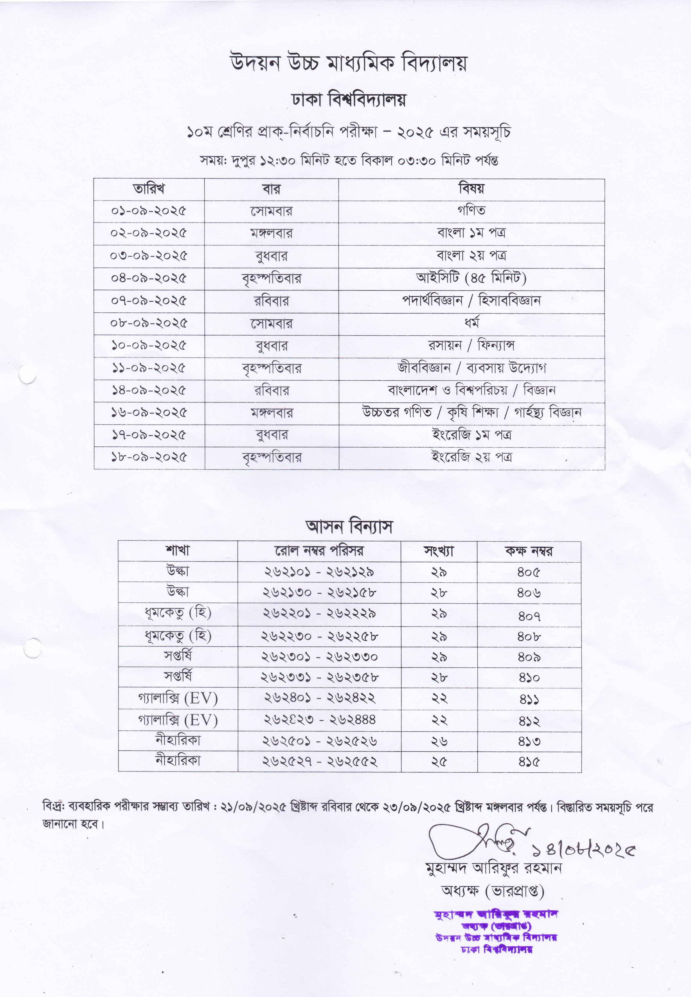 | 2025-09-15 | ১০ম শ্রেণির প্রাকনির্বাচনি স্থগিত পরীক্ষার সংশোধিত সময়সূচি | ***Pre-Test Exam Rescheduled*** | Please Click here to Download it. |