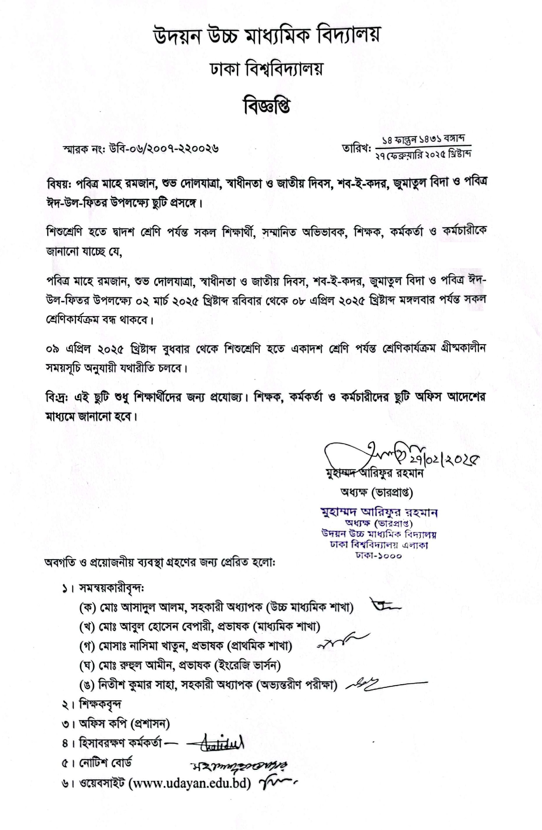 | 2025-04-17 | ইস্টার সানডে উপলক্ষ্যে ছুটি প্রসঙ্গে। | ***Leave Easter Sunday*** | Please Click here to Download it. |