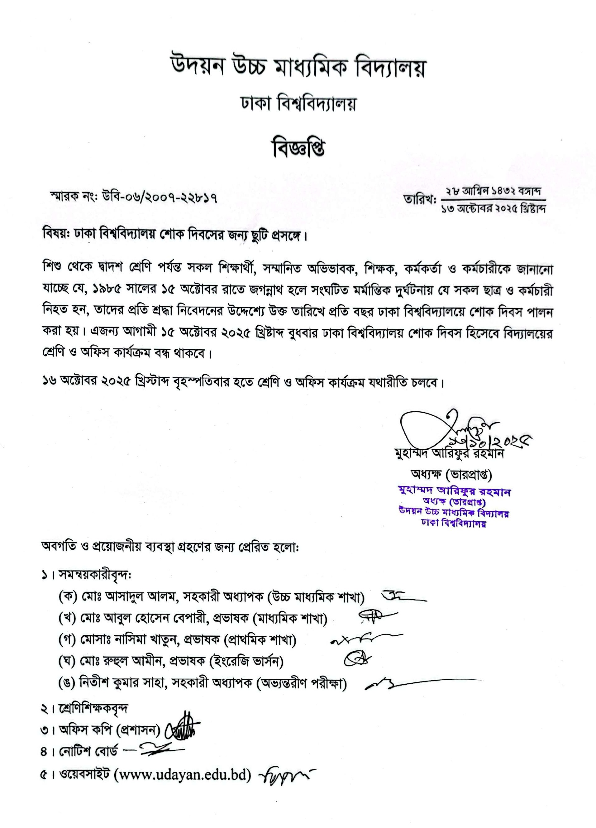 | 2025-10-13 | ঢাকা বিশ্ববিদ্যালয় শোক দিবসের জন্য ছুটি প্রসঙ্গে | ***Leave DU Mourning Day*** | Please Click here to Download it. |