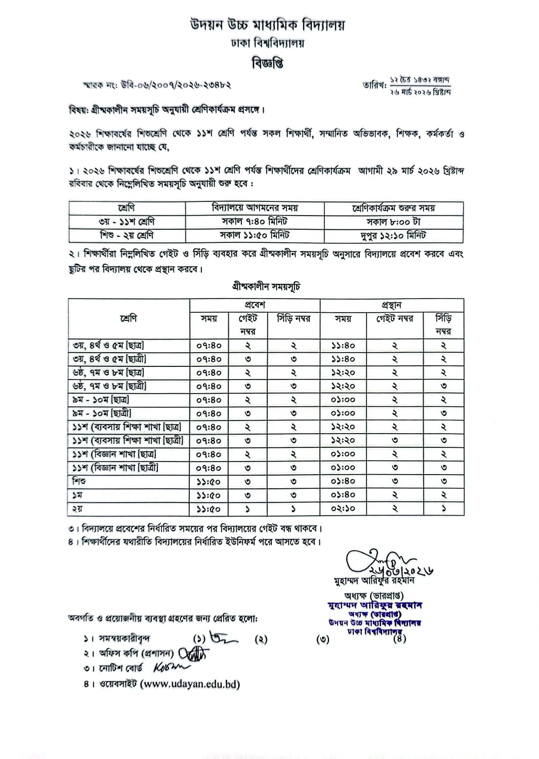 | 2026-03-26 | গ্রীষ্মকালীন সময়সূচি অনুযায়ী শ্রেণি কার্যক্রম প্রসঙ্গে। | ***Summer Timing of Schooling*** | Please Click here to Download it. |