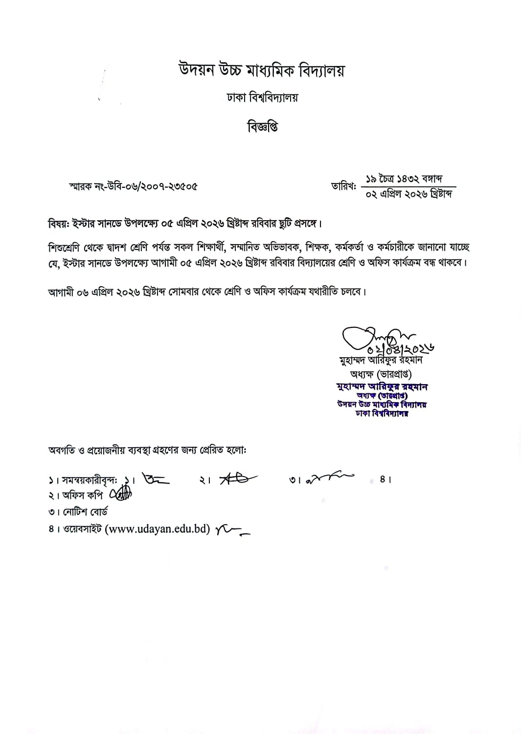 | 2026-04-02 | ইস্টার সানডে উপলক্ষ্যে ছুটি প্রসঙ্গে। | ***Easter Sunday Leave (5 April 2026)*** | Please Click here to Download it. |