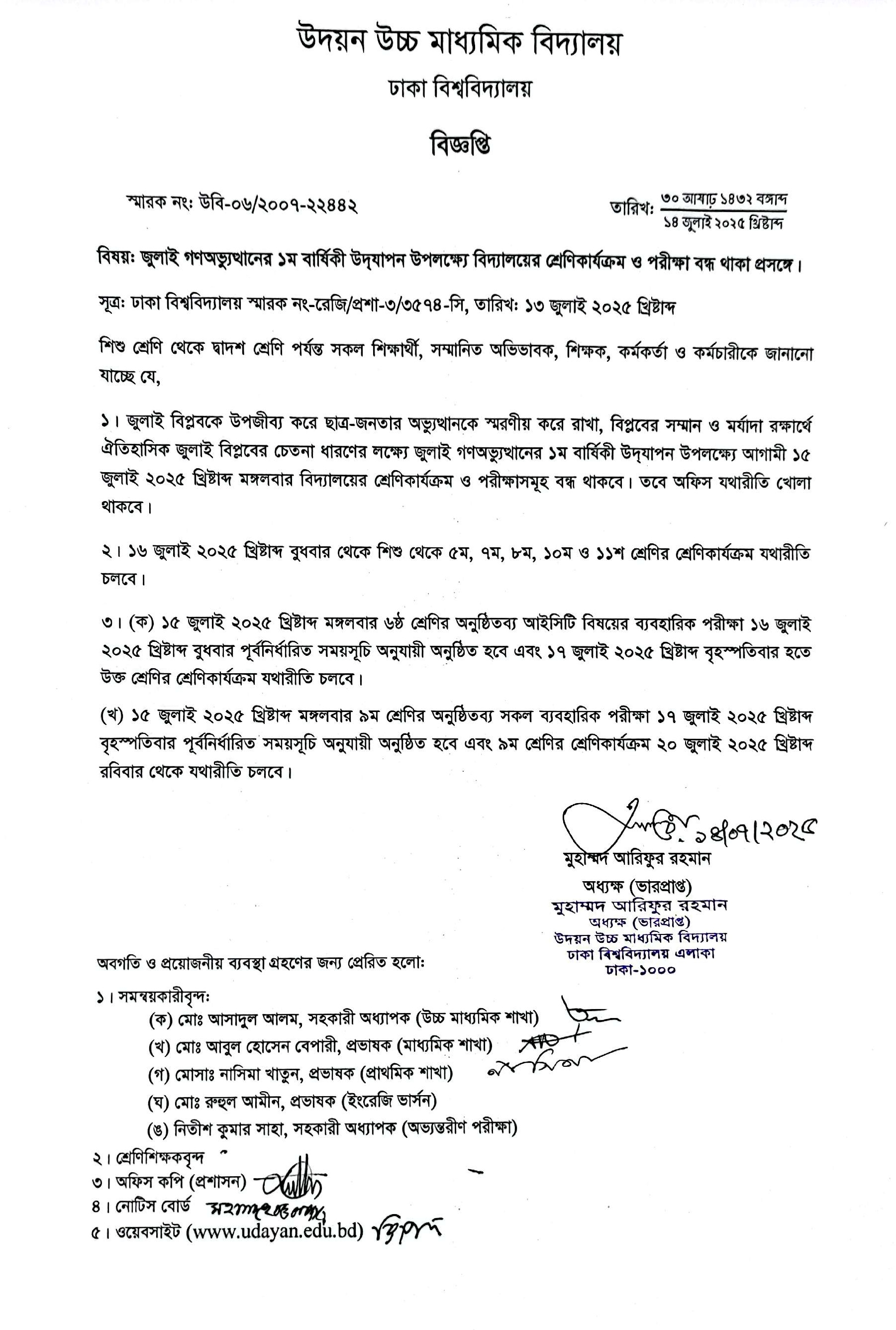| 2025-07-14 | জুলাই গণঅভ্যুত্থানের ১ম বার্ষিকী উদযাপন উপলক্ষ্যে ছুটি | ***Leave for July Anniversary (15 July 2025)*** | Please Click here to Download it. |