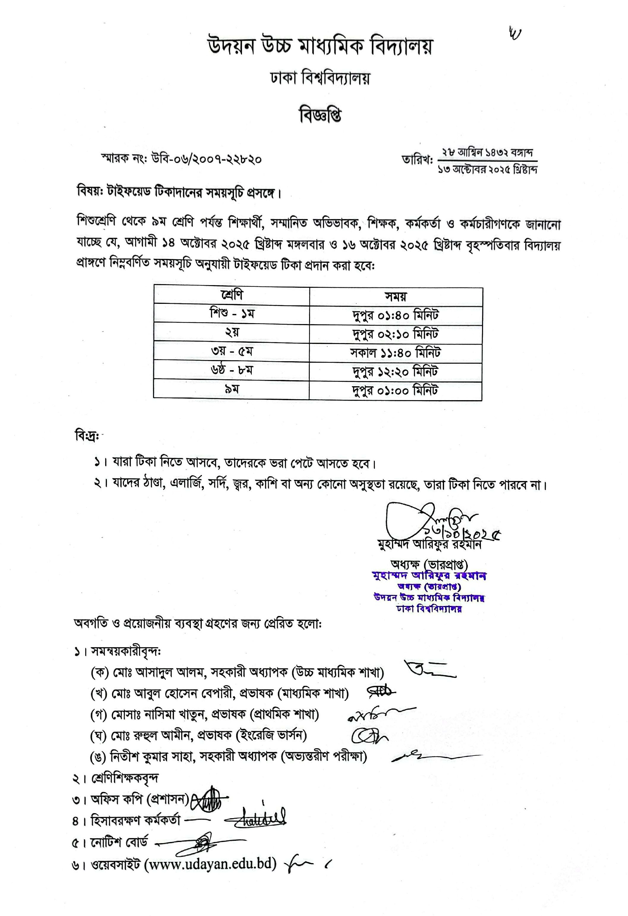 | 2025-10-13 | টাইফয়েড টিকাদানের সময়সূচি | ***Typhoid Vaccination Schedule*** | Please Click here to Download it. |