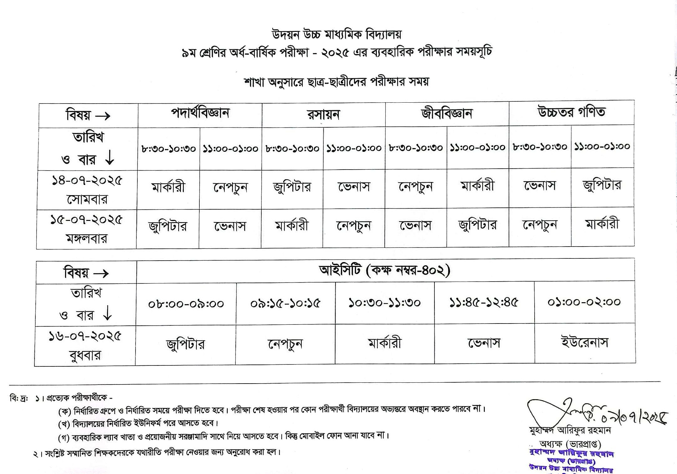 | 2025-07-09 | ৯ম শ্রেণির অর্ধবার্ষিক ব্যবহারিক পরীক্ষার রুটিন | ***Practical Exam Routine*** | Please Click here to Download it. |