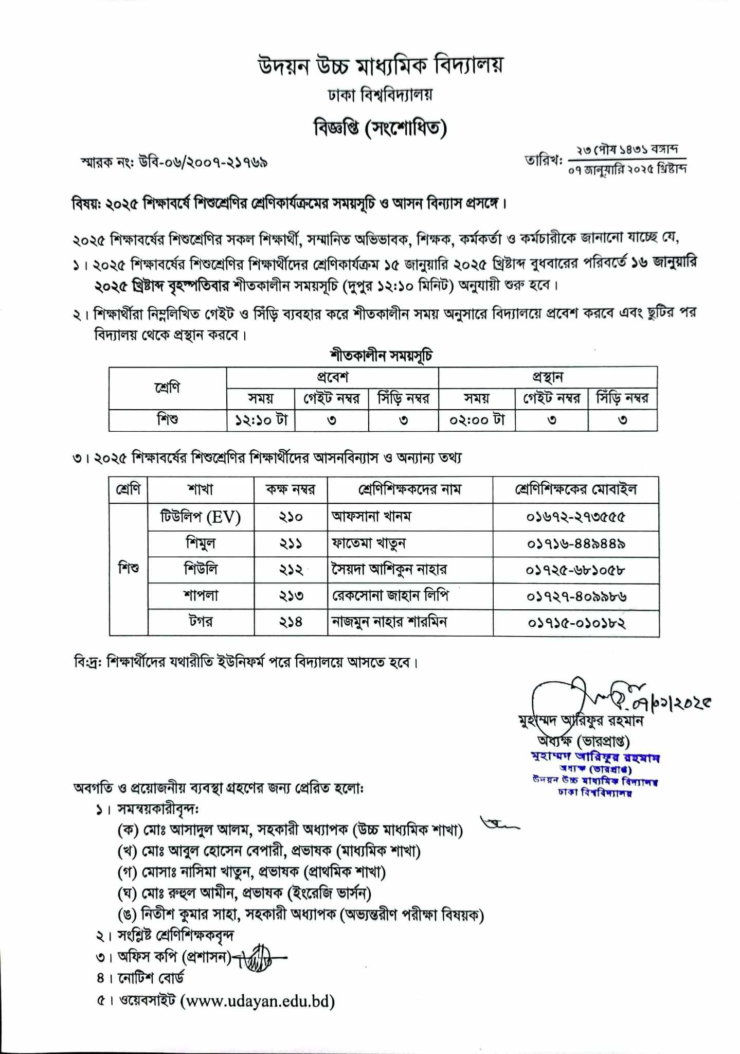 | 2025-11-13 | ১১শ ও ১২শ শ্রেণির শিক্ষার্থীদের প্রবেশ ও প্রস্থানের শীতকালীন সময় | ***Entry Time and Gate (College)*** | Please Click here to Download it. |